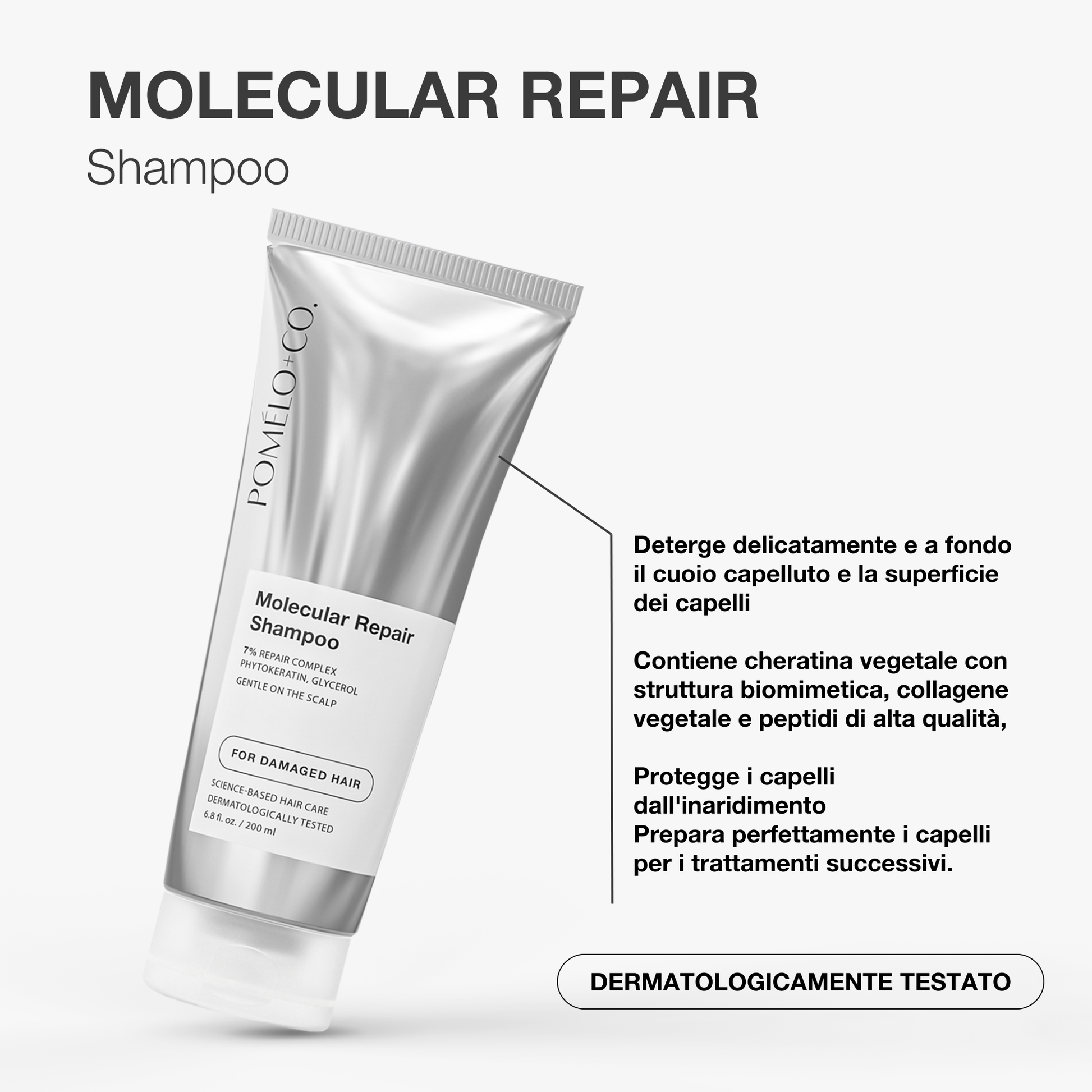 Massaggiare una piccola quantità sul cuoio capelluto e sull'attaccatura dei capelli, lasciare agire brevemente e risciacquare accuratamente. Per ottenere i massimi risultati, procedere con il Balsamo Riparatore Molecolare.