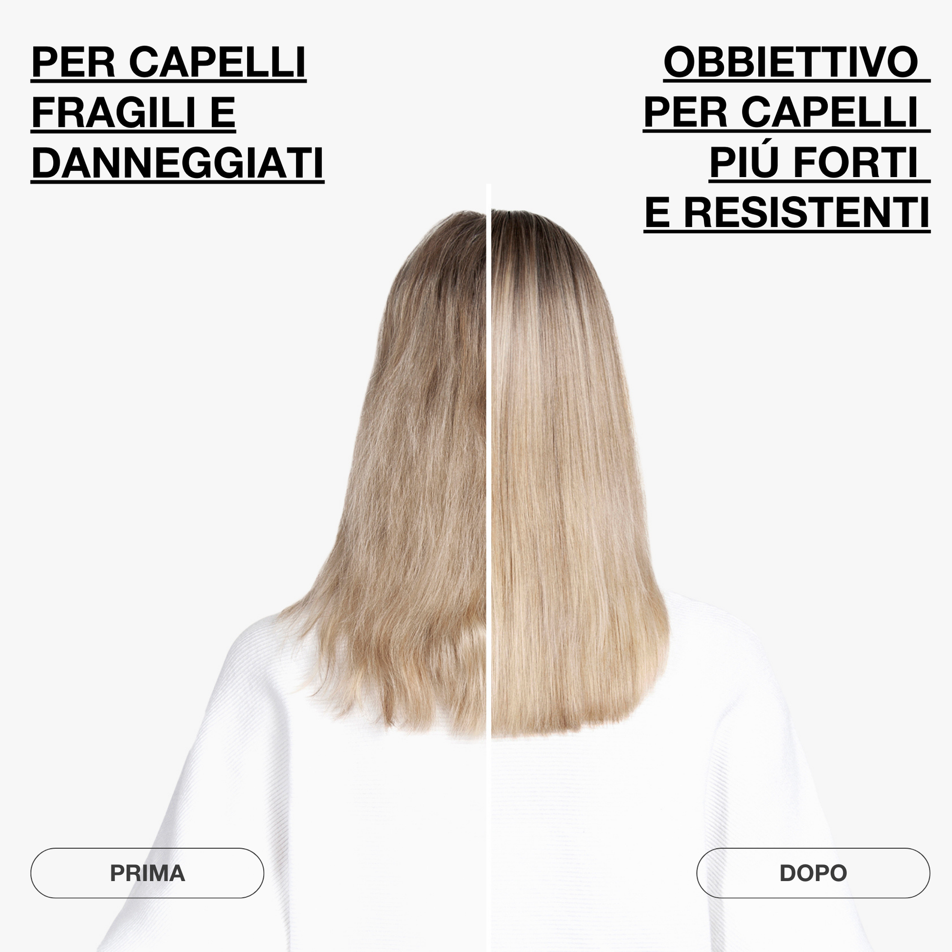 Uno shampoo per capelli danneggiati e fragili che deterge il cuoio capelluto e i capelli in modo delicato e profondo. La cheratina vegetale, il collagene vegano e i peptidi di alta qualità evitano che i capelli si danneggino e li preparano per le cure successive.