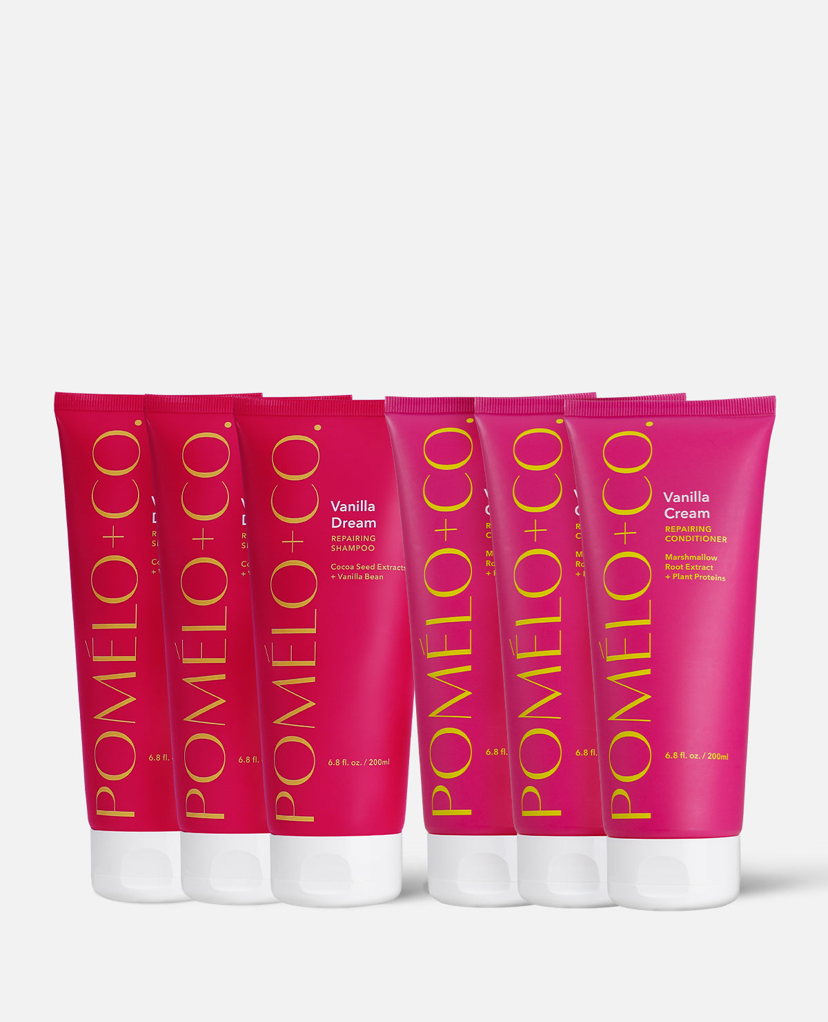 Vanilla Dream Shampoo: Acqua, Sodium Coco-Sulfate, Coco-Glucoside, Lauryl Glucoside, Glycerin, Althaea Officinalis Root Extract, Theobroma Cacao Seed Extract, Vanilla Planifolia Fruit Extract, Hydrolyzed Soy Protein, Proline, Rice, Amino Acids, Triticum Vulgare Protein, Triticum Vulgare Gluten Extract, Persea Gratissima Oil, Hydrolyzed Adansonia Digitata Seed Extract, Panthenol, Hydroxypropyl Guar Hydroxypropyltrimonium Chloride, Guar Hydroxypropyltrimonium Chloride, Caprylyl Glycol, Parfum, Glyceryl Oleate, Citric acid, Polyquaternium-10, Glycol Distearate, Caprylhydroxamic Acid, Myristic Acid, Palmitic acid, Stearic Acid, Polyglyceryl-3 Distearate, Polysorbate 60, Sodium Chloride, Benzoic Acid, Benzyl Alcohol, Potassium Sorbate, Sodium Benzoate, Tocopherol, Hydrogenated Vegetable Glycerides Citrate , Ipomoea Batatas Root Extract
