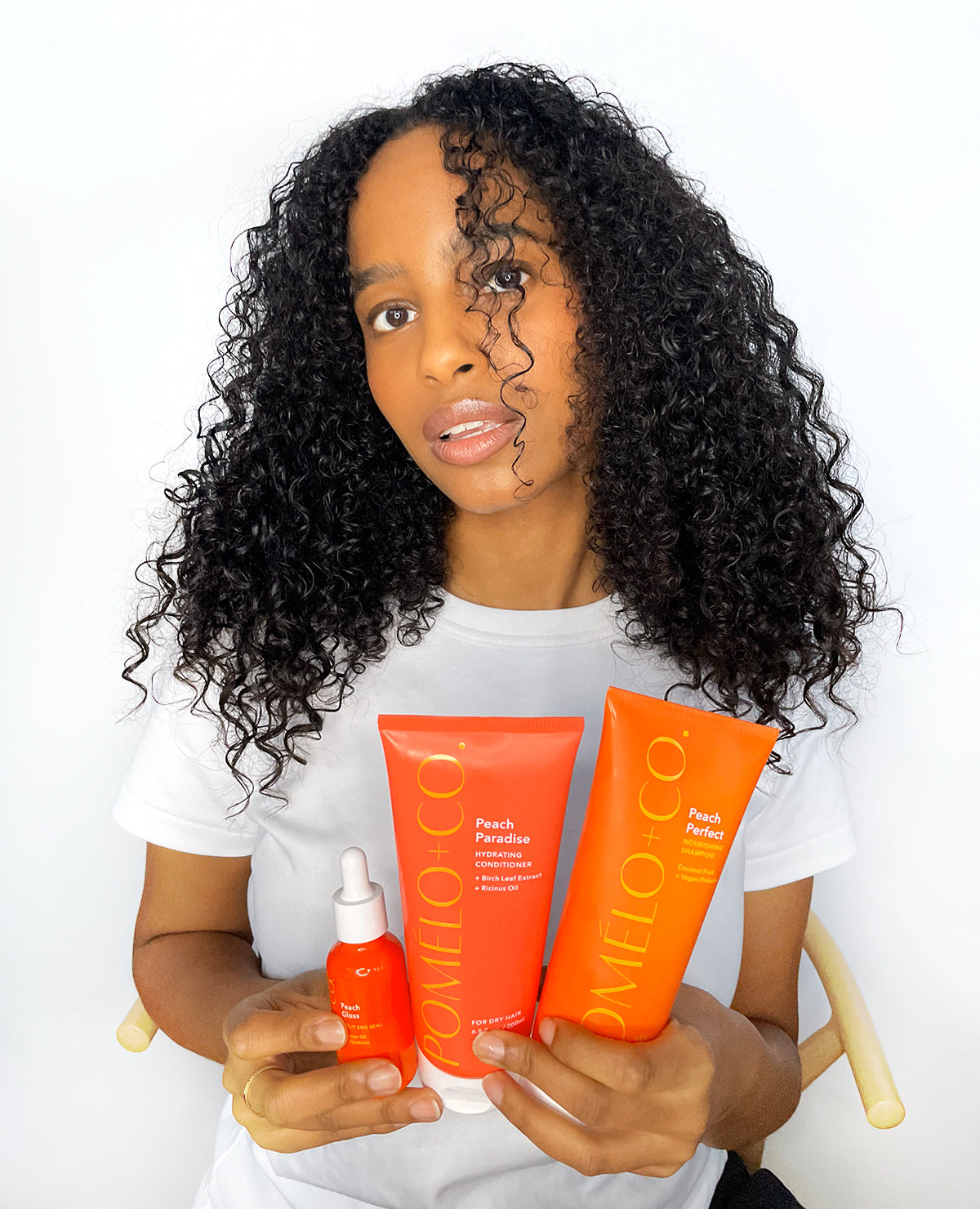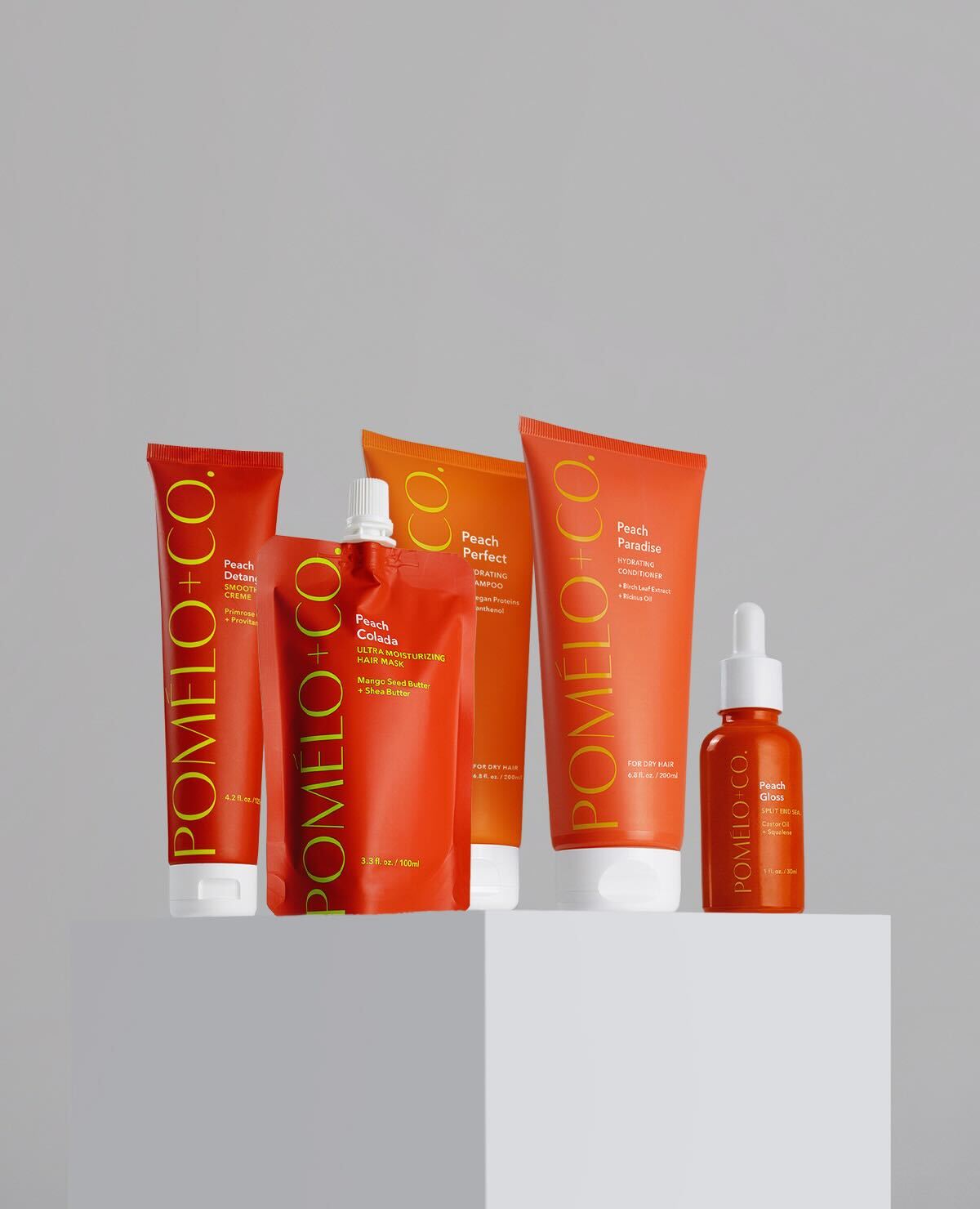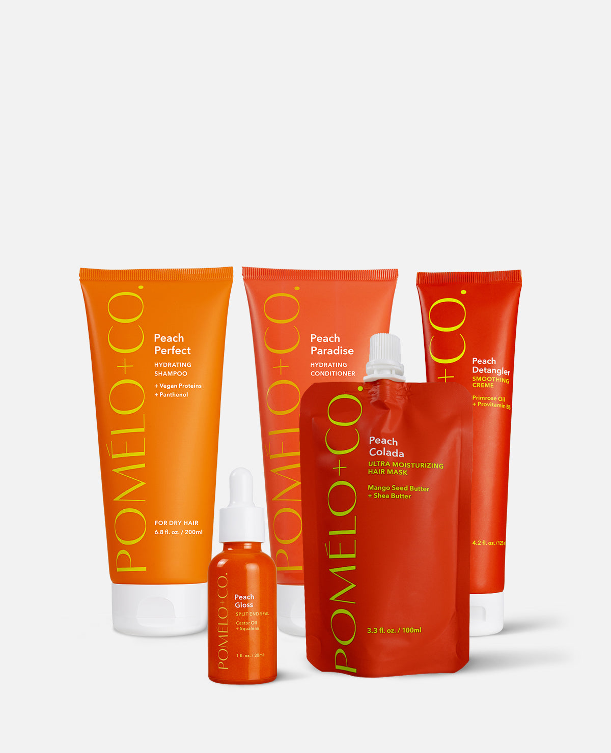 Peach Curl Hydration SetCura idratante profonda per capelli lucenti e morbidi.